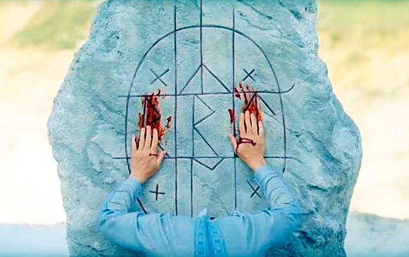 アッテストゥパンの儀式に登場した、ルーン文字が刻まれた墓石