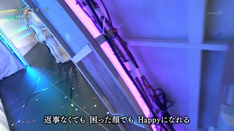 しかし、曲がサビに差し掛かった部分で、突如、映像が切り替わり、スタッフ数名がステージ裾で待機している様子や、機材などが映っていた