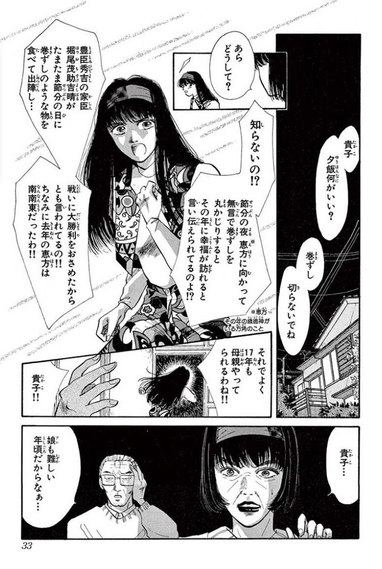 恵方巻きについての深い豆知識を披露して出て行く娘、母親の顔、父親のリアクション。すべてが絶妙で「じわじわ来る」と話題になった。