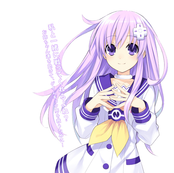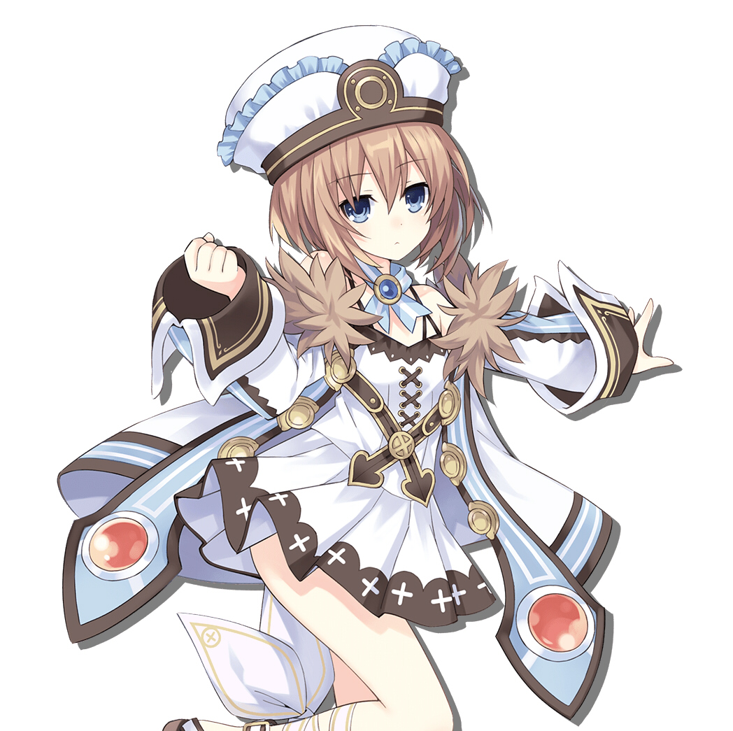 本作の主人公。プラネテューヌの守護女神。性格は明るく常にハイテンションなトラブルメーカーだが、女神化すると冷静沈着な大人の女性へと変貌する。プリンが大好物でナスが苦手。