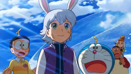のび太と仲間たちによって支配者ディアボロは打ち倒され、解放されたかぐや星に天から光が差し込む。
