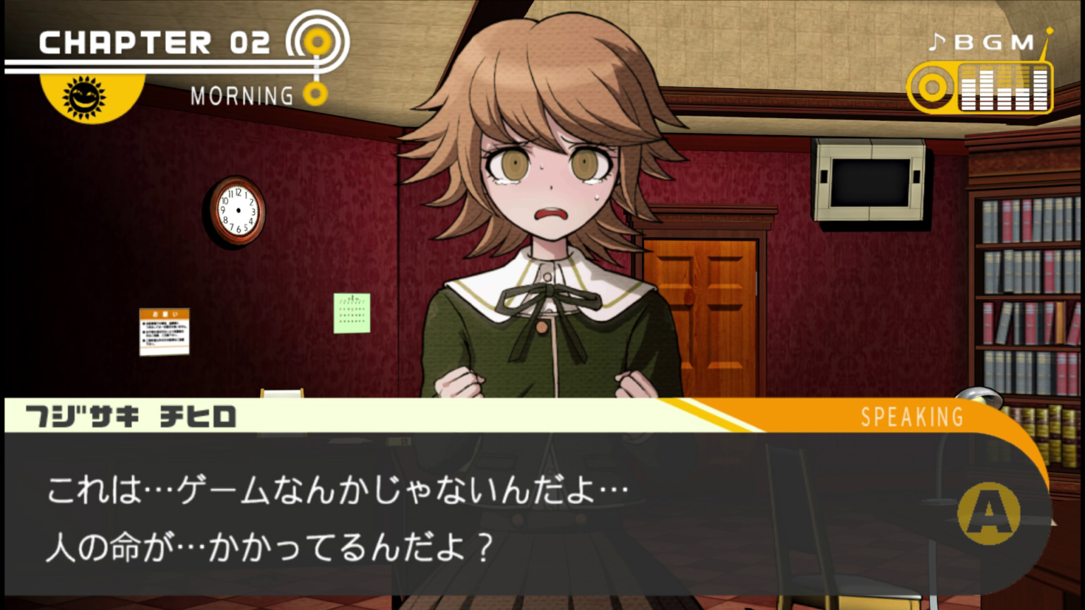 「これは…ゲームじゃないんだよ… 人の命が…かかってるんだよ?」とは、チャプター2での不二咲千尋のセリフ。推理小説のトリックを参考に自分はオリジナルで勝負する、お前たちもゲームを楽しめという十神に対しての不二咲の反論である。しかし「お前ごときが偉そうに、俺の言葉には肯定だけしておけばいいんだ」とばっさり切られてしまう。