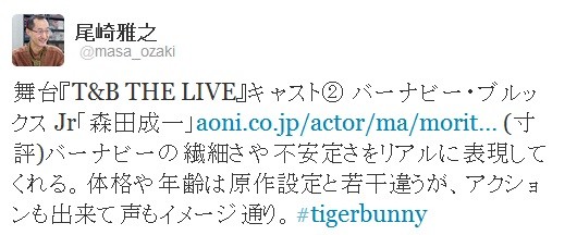 舞台版【TIGER&BUNNY】出演者発表【まさかの本人配役】声優 平田広明さん 森田成一さん出演
