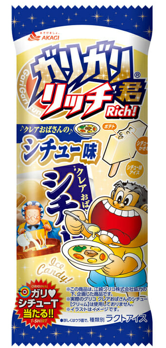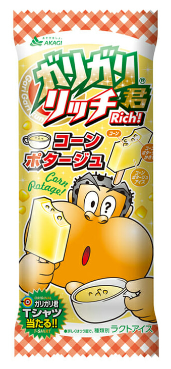 ガリガリ君とは、アイスクリーム専業メーカー赤城乳業株式会社が製造、販売する氷菓。1981年に販売を開始した、同社の人気商品の一つである。ガリガリ君の魅力の一つとして、毎年出される一風変わったフレーバーが上げられる。ガリガリ君の通年商品はソーダのみだが、期間・季節限定でさまざまな種類を販売している。2012年発売の「ガリガリ君リッチ コーンポタージュ味」と、その後発売された「シチュー味」「ナポリタン味」は”衝撃の三部作”としてアイス界に驚きを与えた。