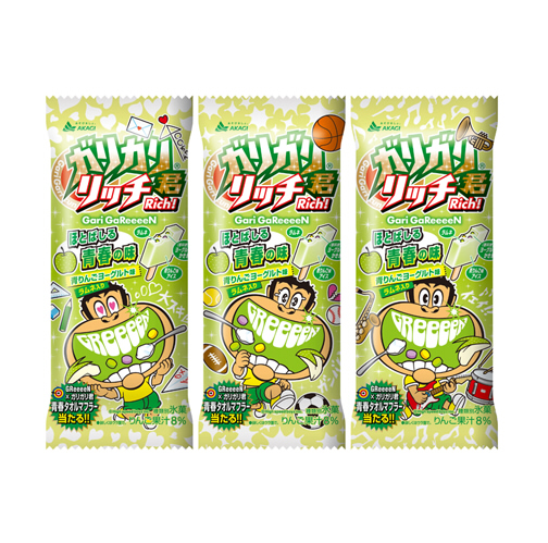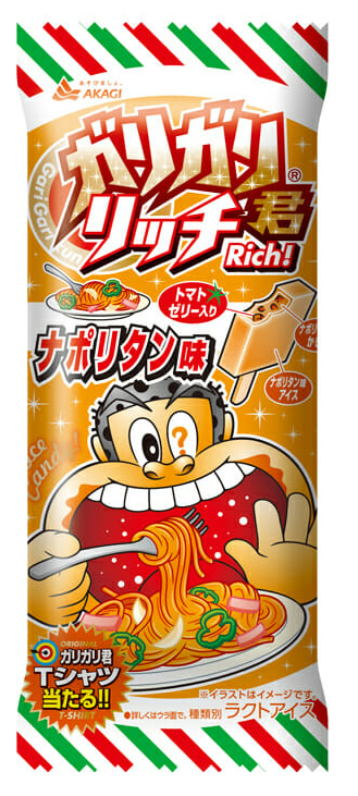 ガリガリ君とは、アイスクリーム専業メーカー赤城乳業株式会社が製造、販売する氷菓。1981年に販売を開始した、同社の人気商品の一つである。ガリガリ君の魅力の一つとして、毎年出される一風変わったフレーバーが上げられる。ガリガリ君の通年商品はソーダのみだが、期間・季節限定でさまざまな種類を販売している。2012年発売の「ガリガリ君リッチ コーンポタージュ味」と、その後発売された「シチュー味」「ナポリタン味」は”衝撃の三部作”としてアイス界に驚きを与えた。