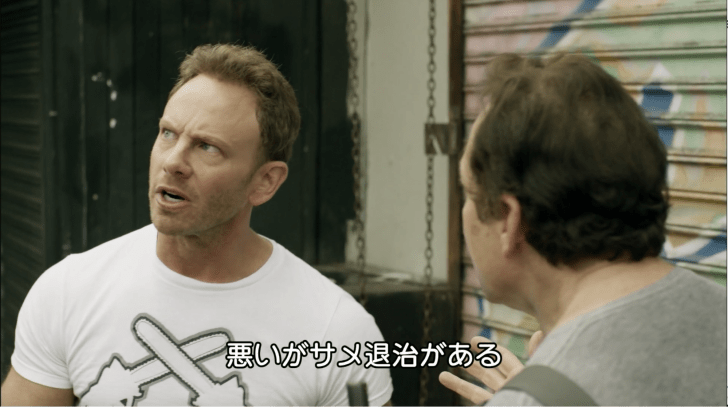 パニックになった街で人々の救助にあたるコルトンとクリスは、通りかかった元気そうな男性に手伝ってもらおうと声を掛ける。しかし彼は、「悪いがサメ退治がある」と去って行ってしまった。この男こそ、人気映画『シャークネード』シリーズの主人公、フィン・シェパード。彼はサメには強いが、巨大なクモは専門外のようだ。カメオ出演したフィン・シェパードは観客の爆笑をさらい、またどこかに現れたサメを倒しに向かっていくのであった。