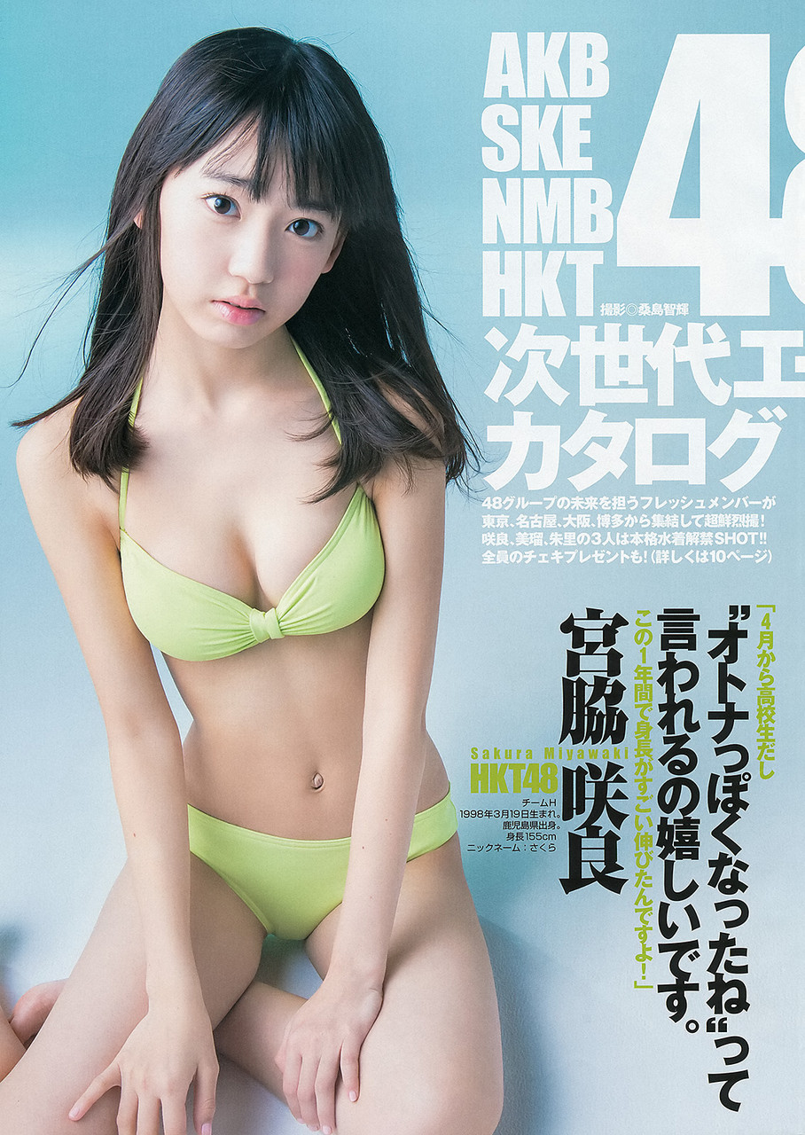 ここではアイドグループ「HKT48」の元メンバー、宮脇咲良のセクシーな水着ショットをまとめた。AKB48グループの活動と並行して日韓合同グローバルガールズグループ「IZ*ONE」のメンバーの座を勝ち取り、日本に留まらないグローバルな活躍をしている。