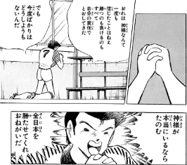 - 「おれは 神様なんて 一度も信じたことはねえ 勝つのも負けるのも すべて自分の責任でとおしてきた でも 今度ばかりはどうしようもないんだ」