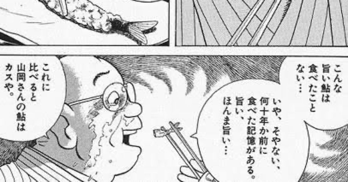 入院していた京極万太郎の退院祝い。そこで繰り広げられたのは、山岡士郎と海原雄山による「鮎の天ぷら」対決だった。