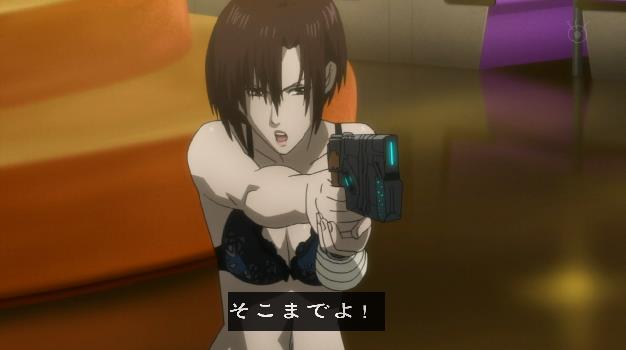 スキを突いて、反撃しようとする青柳監視官。しかし半在係数がなぜか低くドミネーターが起動しない
