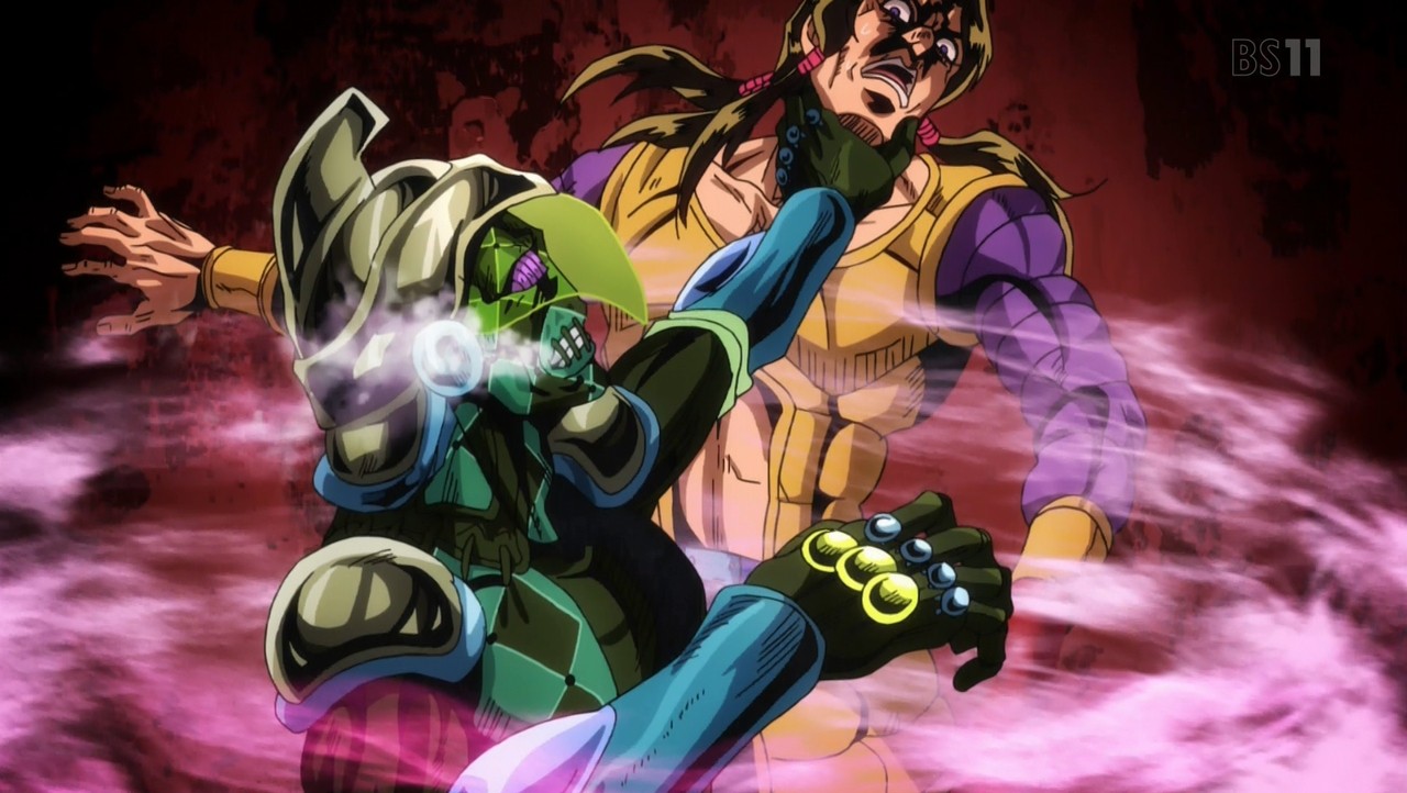 マン・イン・ザ・ミラーが全力でパープル・ヘイズのパンチを止めたが、その拳に着いたウイルス入りのカプセルが外れて割れた。途端にウイルスが漏れて、イルーゾォは再び感染してしまう。化け物じみた咆哮を上げながらパープル・ヘイズはイルーゾォに執拗なラッシュを食らわせた。